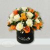 Hermoso Arreglo en caja redonda x 24 rosas y follaje.
